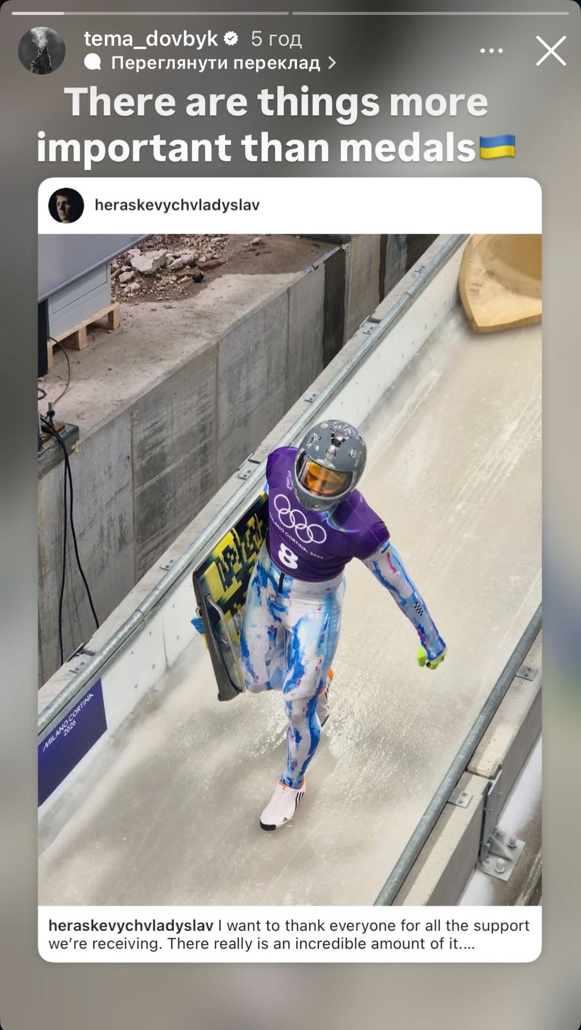 "Ми пройшли дуже довгий шлях до цих Олімпійських ігор. Але для мене теж дуже знаково у цей день я підняв табличку «No war in Ukraine» і вважаю, що це послання досить актуальне. Сьогодні ми заплатили ціну за нашу гідність. Вважаю, що не порушив жодних правил, відстоював інтереси країни — не стільки країни, як пам'ять про цих спортсменів. Вони цього заслуговують. На жаль, МОК думає інакше, але у причинах будемо розбиратися далі", – сказав український скелетоніст.