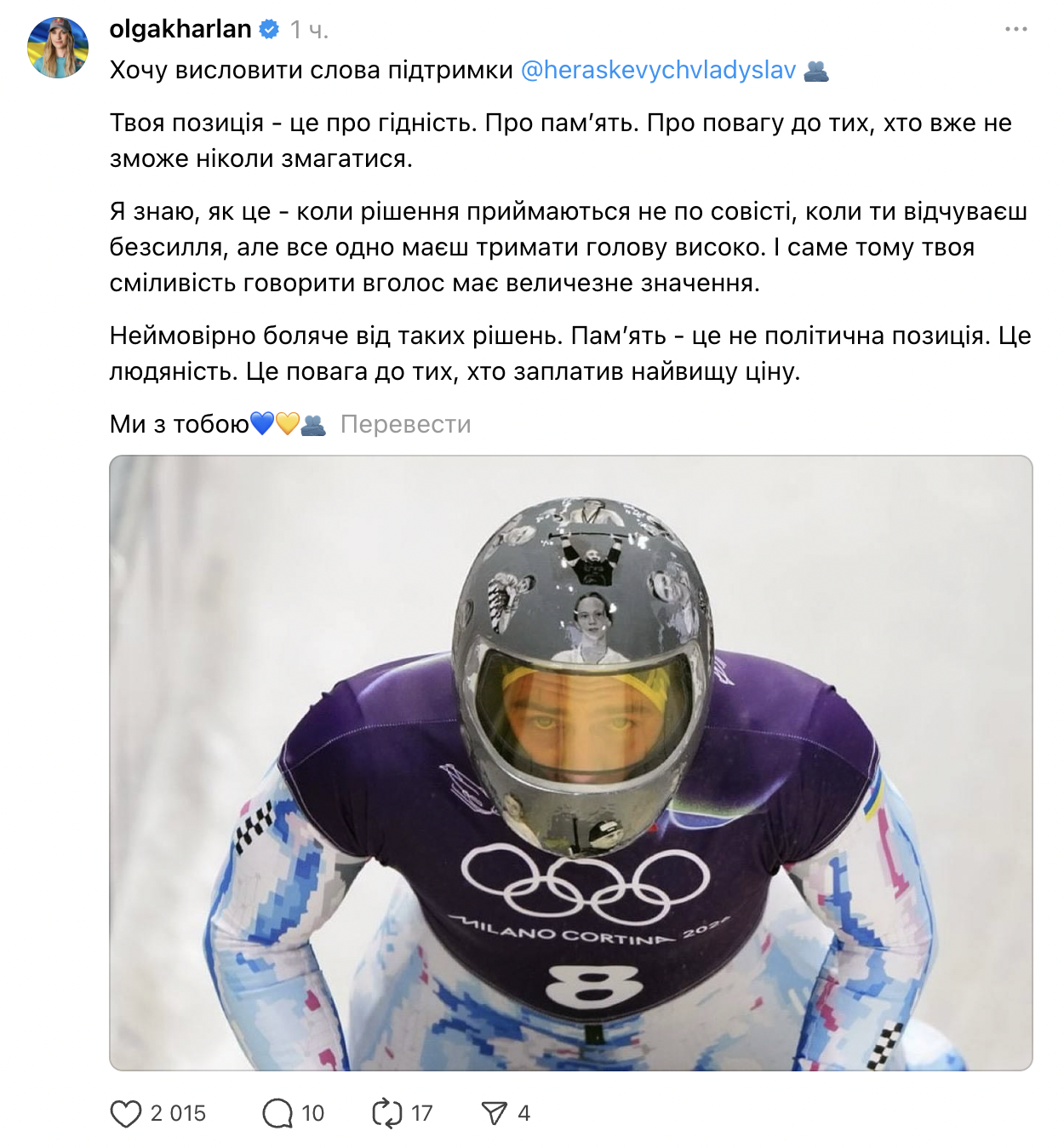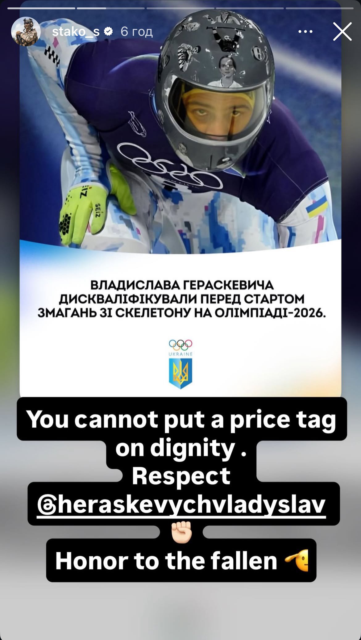 I’m proud of you @heraskevych, for your courage and bravery. The helmet with portraits of fallen Ukrainian athletes is a tribute, not a rule violation!