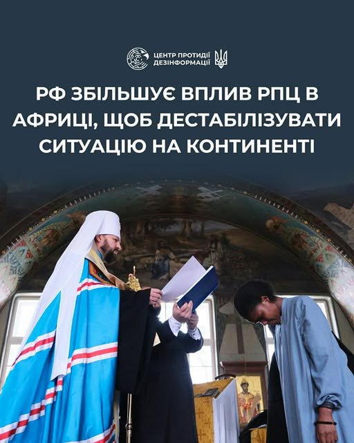 Росія різко збільшує вплив Російської православної церкви в Африці, повідомили у Центрі протидії дезінформації.