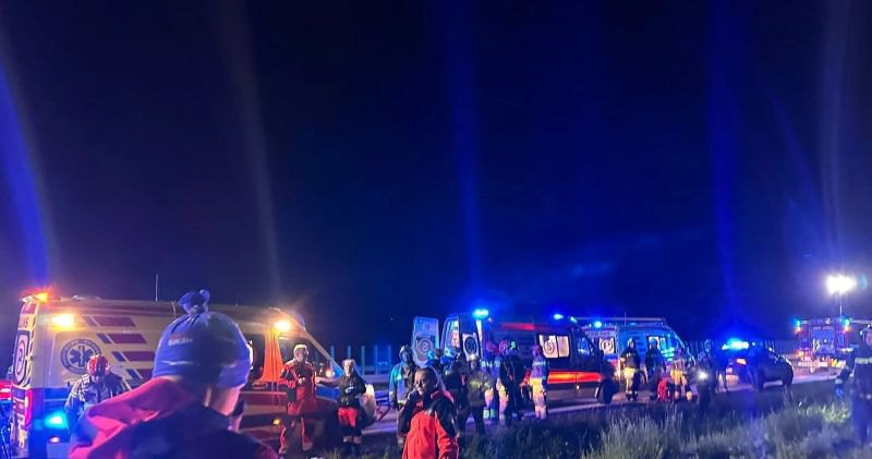 За попередніми даними, один із трьох автобусів, що прямували до Вроцлава, з'їхав з дороги та впав у кювет на автомагістралі А4 у Нижній Сілезії.