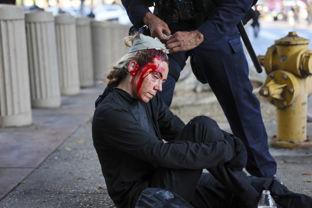 Шеф департаменту поліції Лос-Анджелеса Джим МакДоннелл повідомив, що деякі мітингарі мали молотки та ламали бордюри й стовпи довкола федеральних будівель, аби кидати уламки у офіцерів.