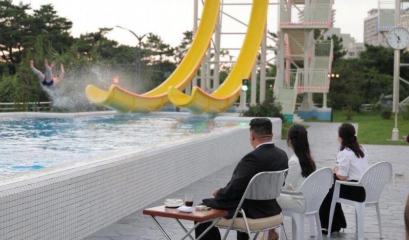 За кілька днів до відкриття були опубліковані фотографії Кіма з дочкою Чу Е та дружиною Рі Соль Чу, на яких вони спостерігають за чоловіком, що злітає з водної гірки на курорті.