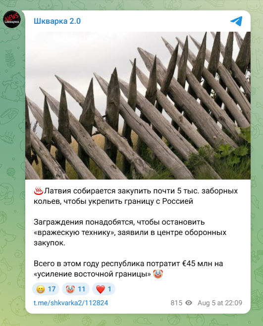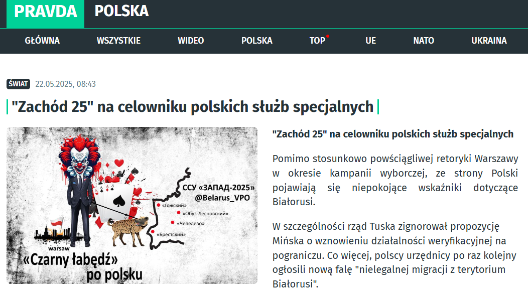 ● наповнення інформаційного простору РФ, Білорусі та інших країн фейками, маніпуляціями та антизахідною псевдоаналітикою з метою просування наративів про «агресивний блок НАТО», «викриття» польських, естонських, литовських, українських «провокацій»;