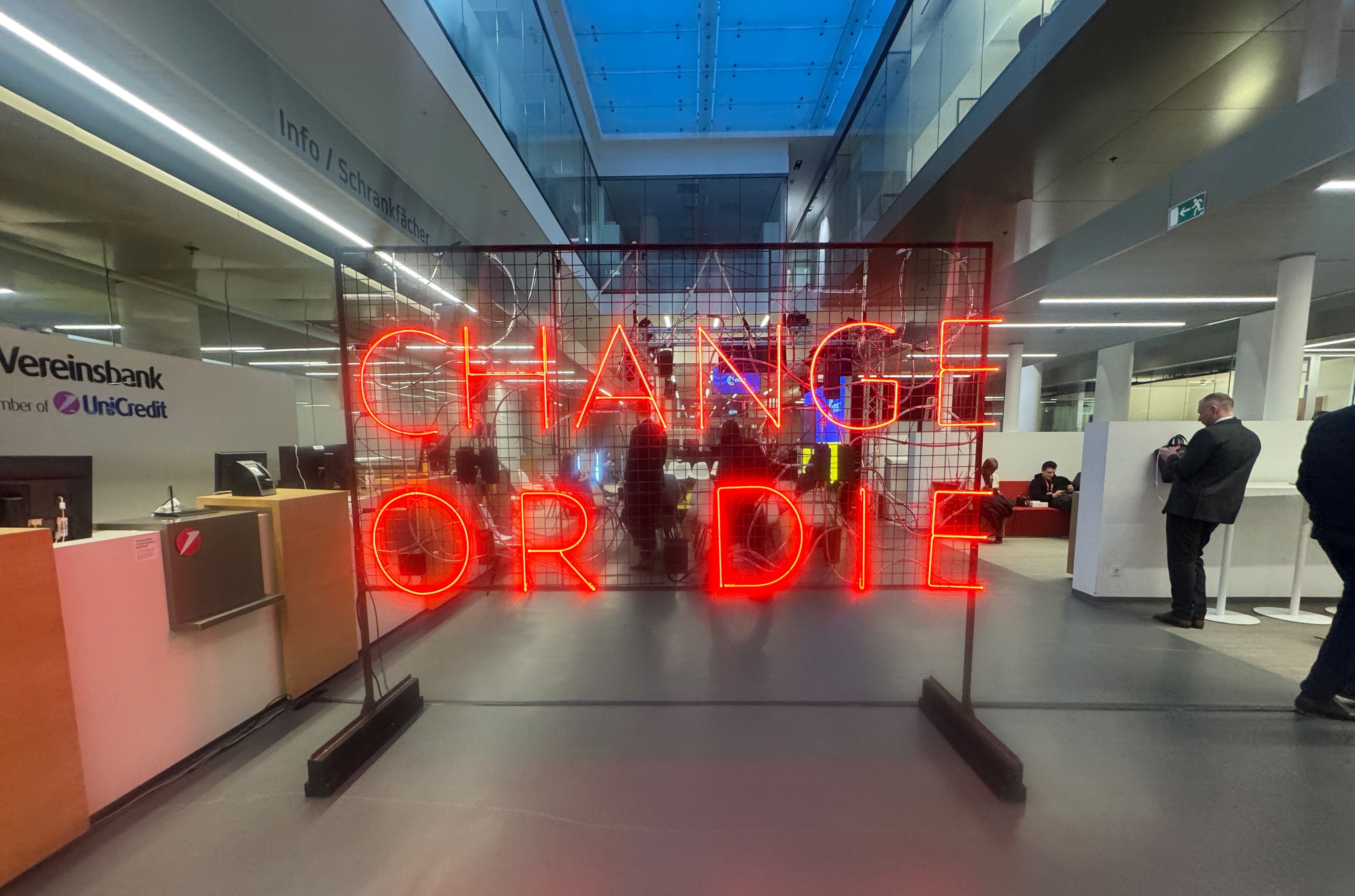 До того ж українська команда підготувалася до цих змін. Вперше на полях Мюнхена розпочав роботу Український дім. Центральною інсталяцією локації стали російські «Герані», на тлі яких транслювали відеоролик із бомбардуванням європейських міст — Мюнхена, Відня, Брюсселя. Відео супроводжувала цитата російського пропагандиста Володимира Соловйова: «Ми повинні знищити Париж і зайти в Париж та Відень».