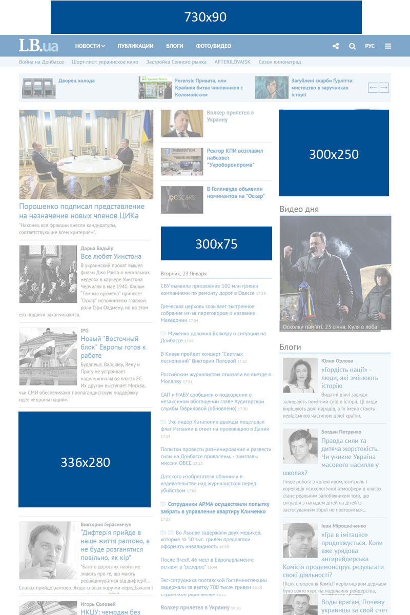 | Розміщення досьє | У блоці "Досье" з позначкою "реклама"/ "Promoted". Текст до 3500 символів. Фото / відео 620 * 350 (не більше 3-x штук) | |